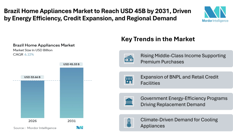 Mordor Intelligence has published a new report on the Brazil home appliances market, offering a comprehensive analysis of trends, growth drivers, and future projections.