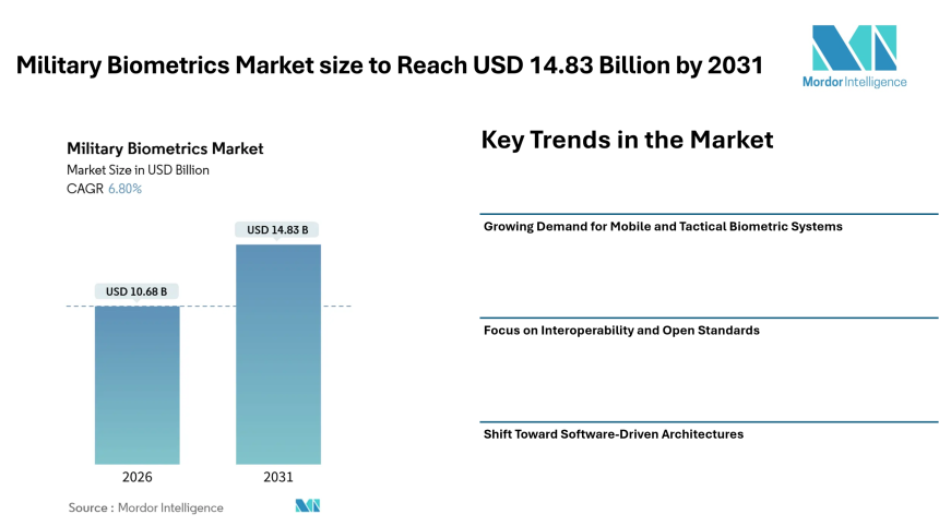 According to Mordor Intelligence, the military biometrics market size is expected to reach USD 10.68 billion in 2026 and grow further to USD 14.83 billion by 2031, reflecting consistent market growth over the forecast period. This expansion is supported by rising concerns around cross-border threats, irregular warfare, and the need for secure authentication systems in sensitive operations.