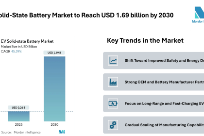 EV Solid-State Battery Market to Reach USD 1.69 billion by 2030, Driven by Safety-Focused Designs and OEM Integration – Mordor Intelligence